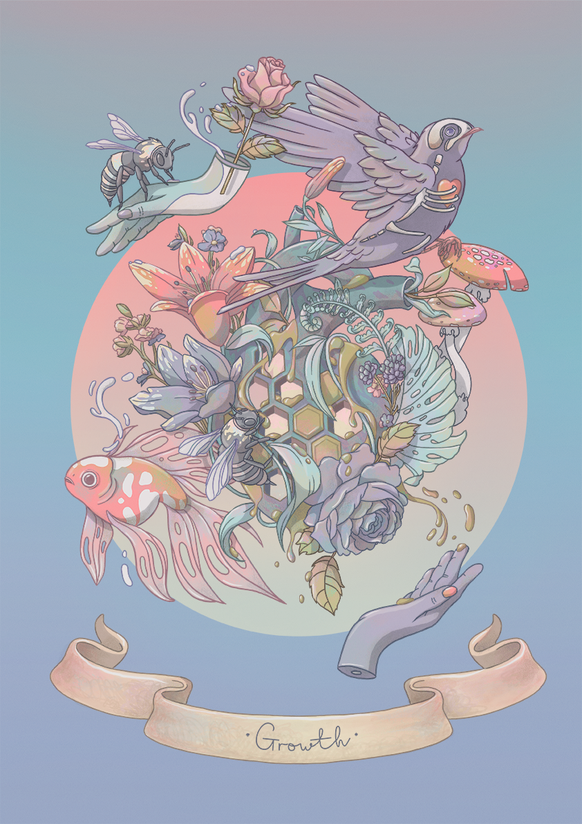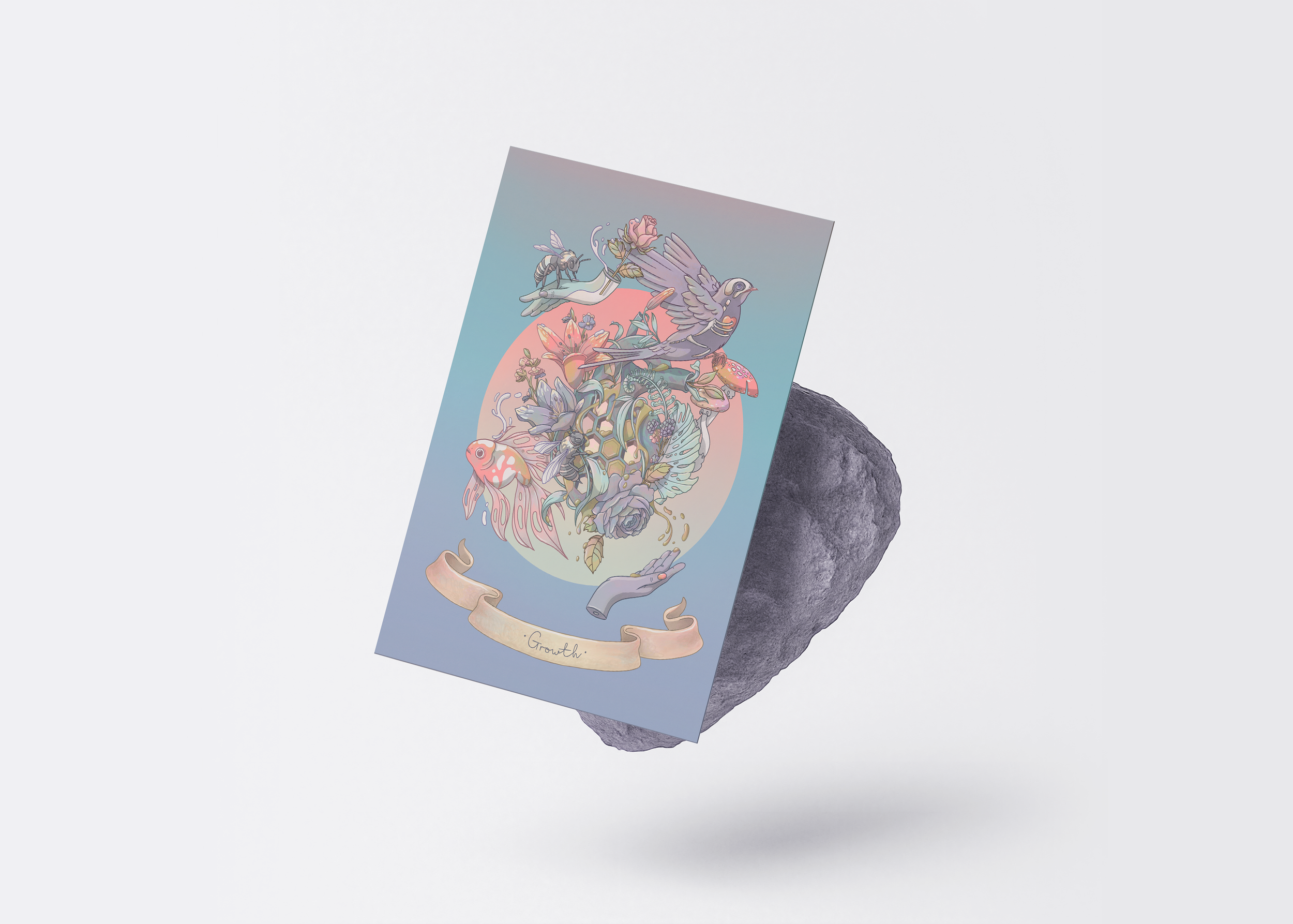 Postcard designed for a wedding invitation. The concept was thoughtfully inspired by the couple’s journey, their shared experiences, their story, and the place where their wedding took place. Every element weaves a narrative, symbolizing their growth together and the beautiful evolution of their love.